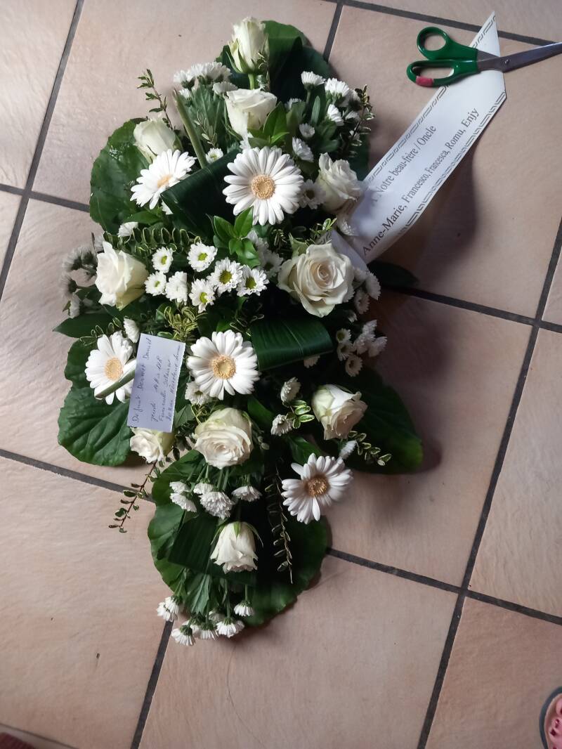 Nous réaliserons votre choix pour ce moment douloureux : couleurs, forme, fleurs pour